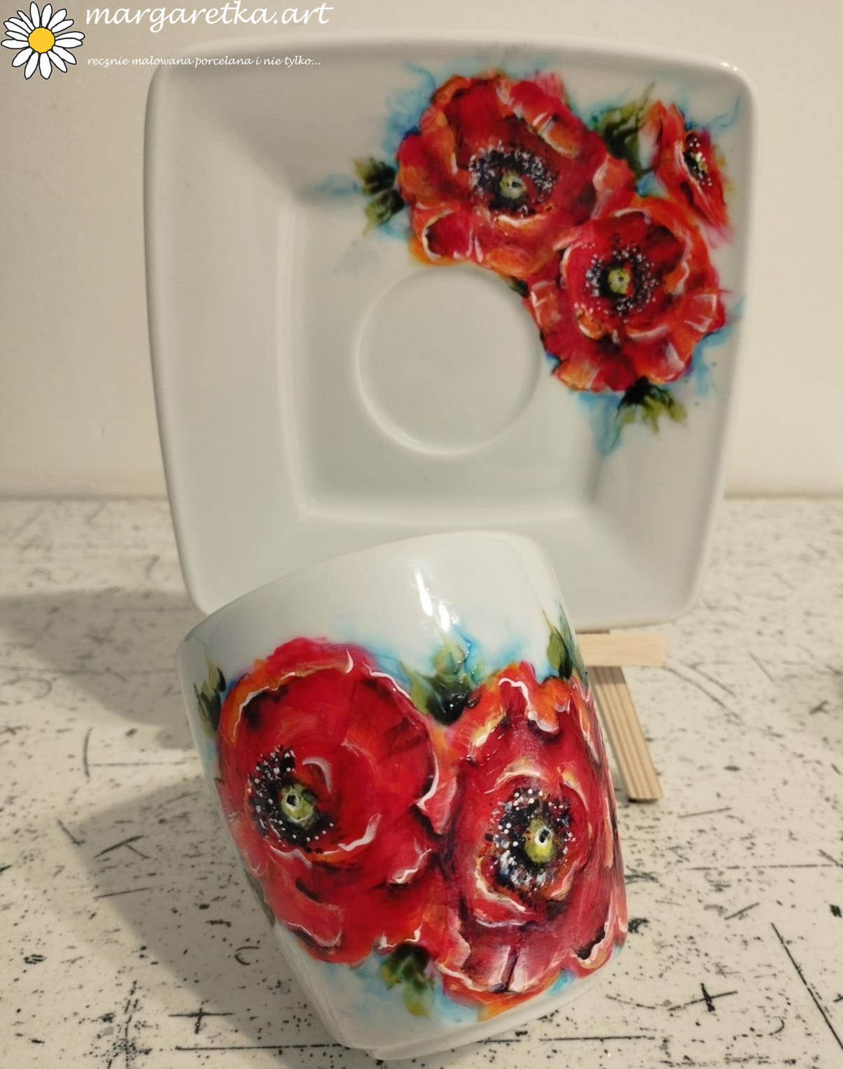 Porcelana po namalowaniu jest wypalana w wysokiej temperaturze przez co wzór jest wodoodporny i trwały, ale zalecam mycie ręczne miękką gąbką żeby nie szorować i nie uszkodzić mechanicznie.
