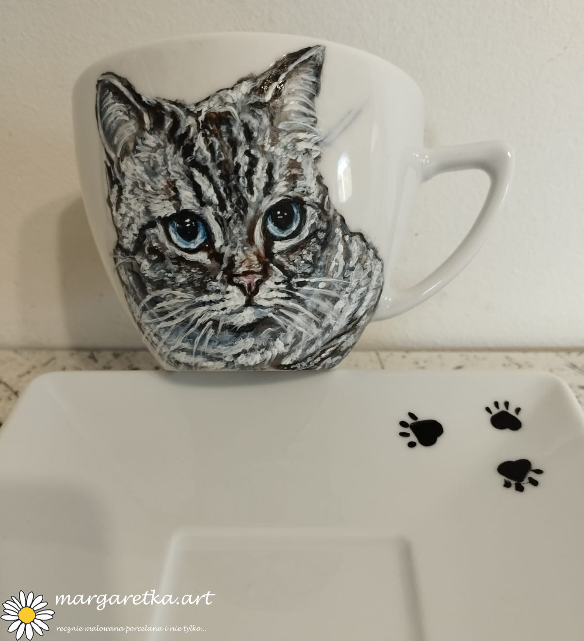 Ręcznie malowany kubek z kotkiem to wyjątkowy dodatek dla miłośników zwierząt i unikalnego designu. Kubek został wykonany z wysokiej jakości porcelany, a każdy jego detal malowany jest ręcznie, co czyni go niepowtarzalnym. Idealnie sprawdzi się zarówno na poranną kawę, jak i wieczorną herbatę, dodając codziennym chwilom uroku i radości. To doskonały pomysł na prezent, który zachwyci swoim oryginalnym wzorem i starannym wykonaniem.